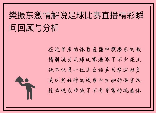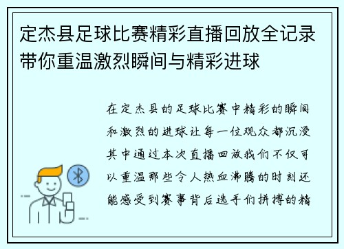 丰都庙会足球比赛是一场结合了传统文化与现代体育的盛会,其精彩直播回放为广大球迷提供了一个难得的视觉盛宴。本文将从四个方面对丰都庙会足球比赛进行详细回顾,分别是赛事的背景和意义、精彩瞬间的分享、选手表现与战术分析以及观众反应与互动体验。通过这些角度,我们不仅能感受到比赛本身的激烈和紧张,更能领略到这一...